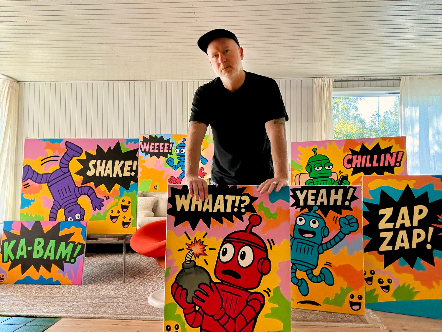 Swedish visual artist working with pop language, bold color, and graphic clarity. Building worlds through paintings, objects, and transmissions.