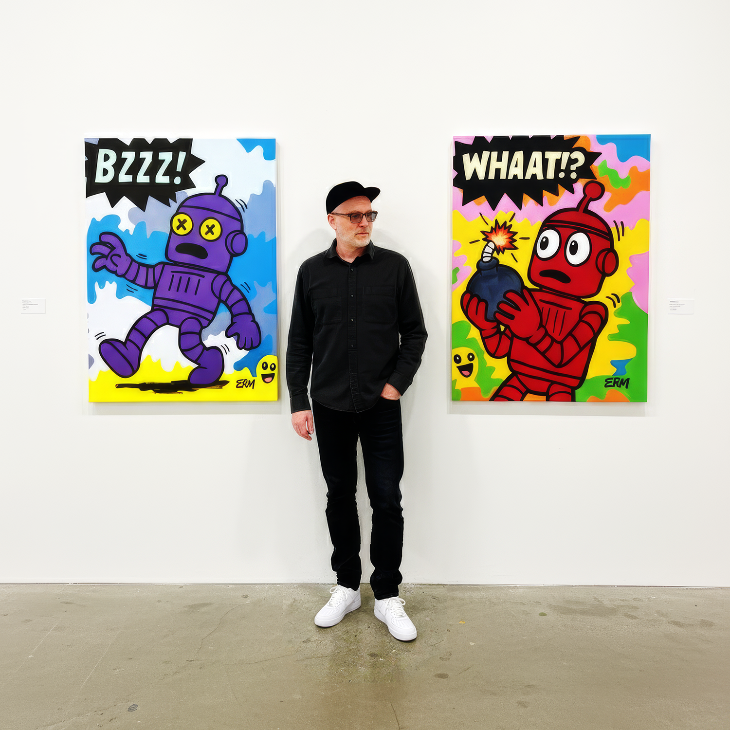 ERM creates pop-influenced works that feel familiar, expressive and slightly out of place. Like fragments from a culture you can’t quite verify.